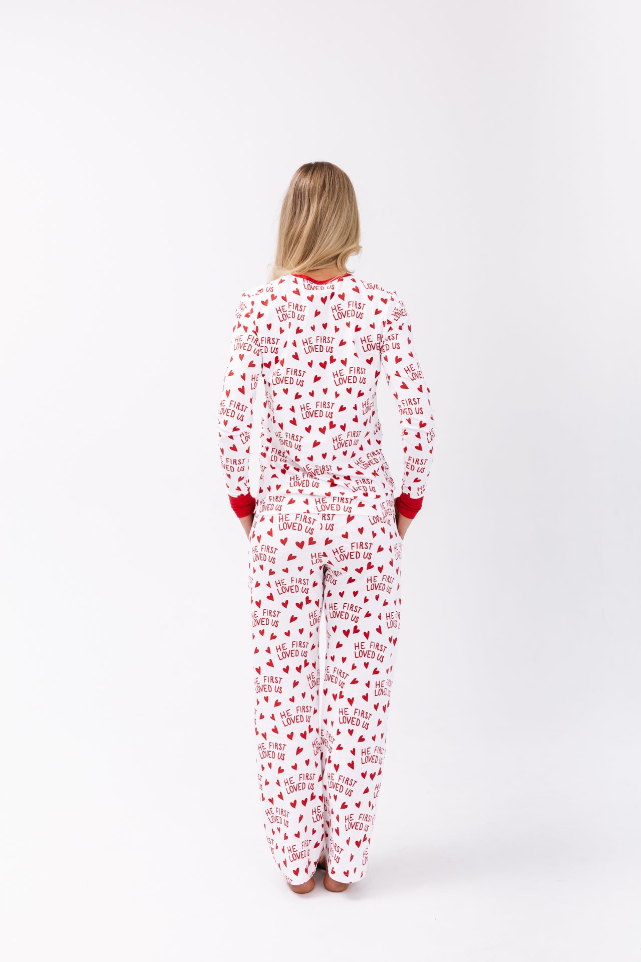Inspired by 1 John 4:19: "We love because He first loved us",  these PJs are a perfect reminder of God's unconditional love for us, and a great way to discuss his love with your children and grandchildren! The perfect Valentine's gift and Easter basket stuffer.