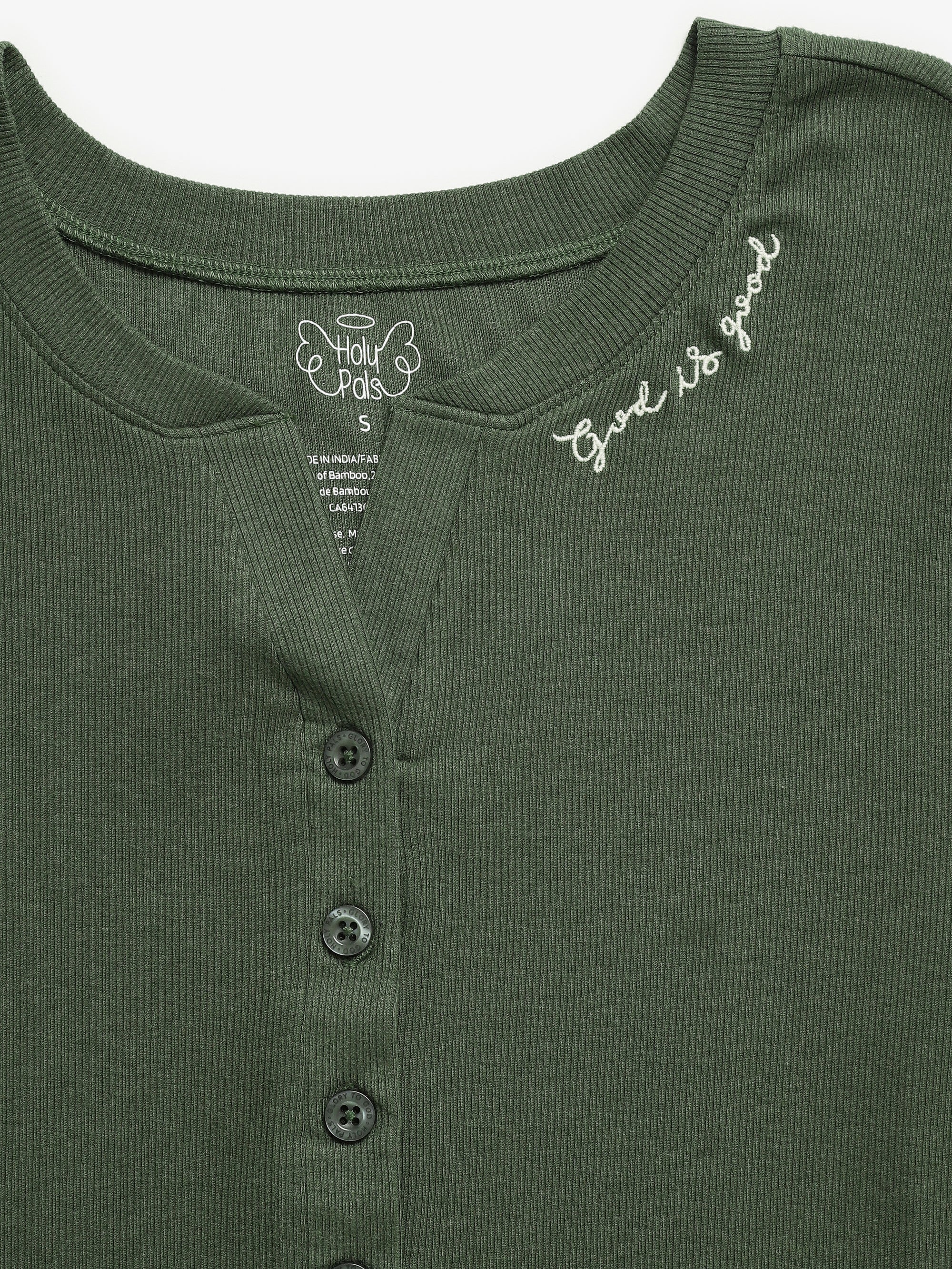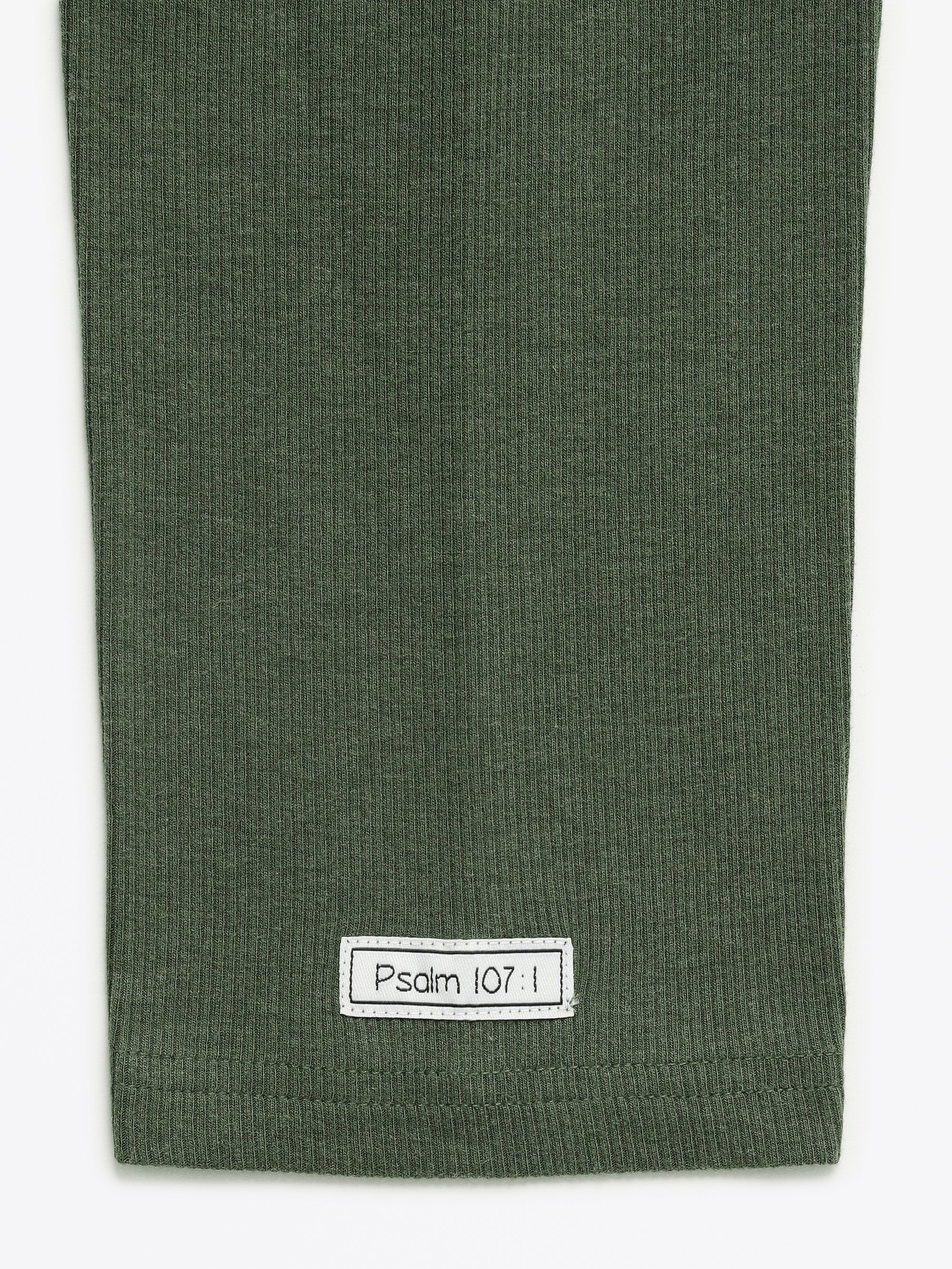 It is soft, stretchy, and quietly faith-forward, coordinating with family pieces that declares “God is good” (Psalm 107:1).