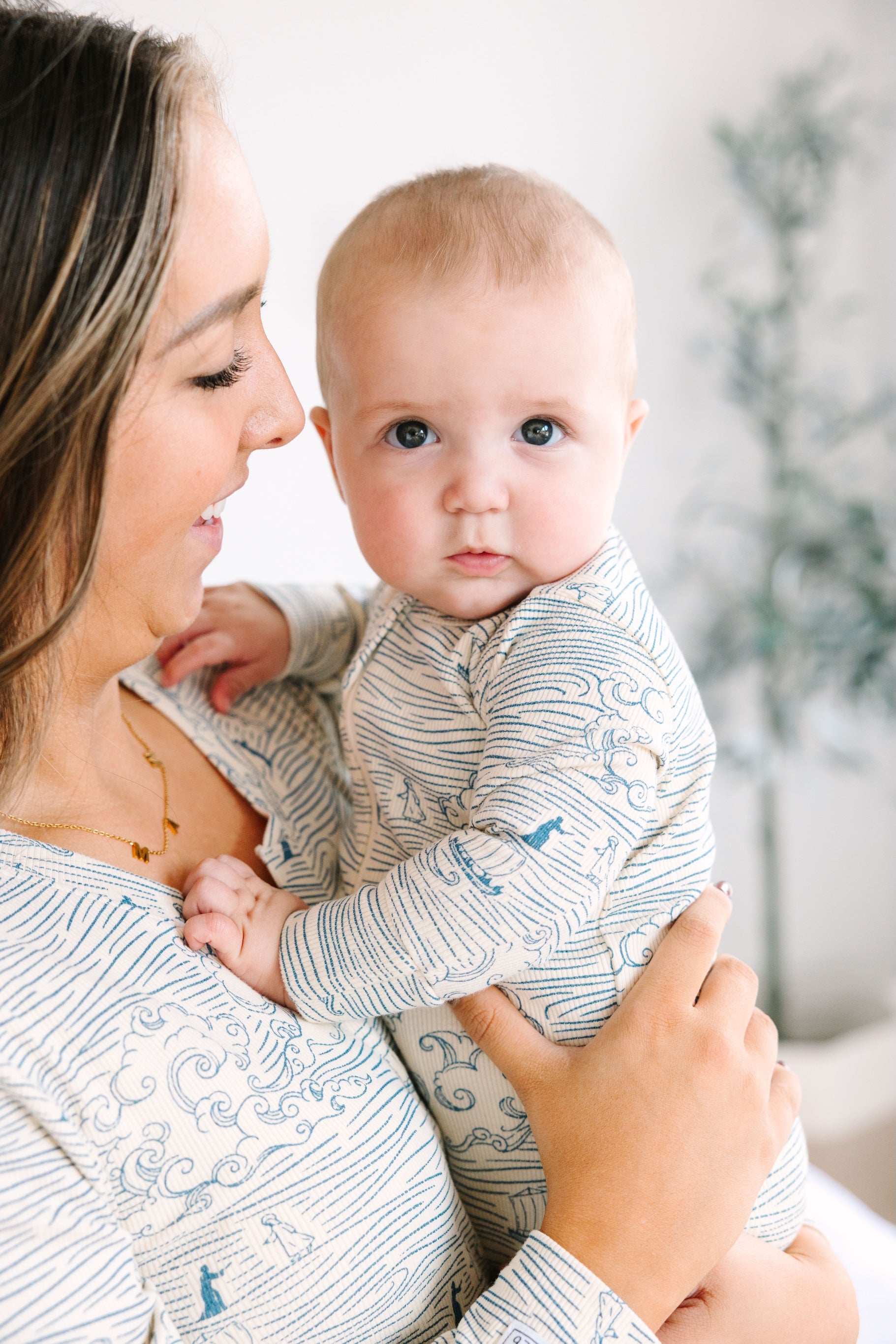 Walking on Water PJ Footed Onesie Ribbed Cotton-Bamboo Blend