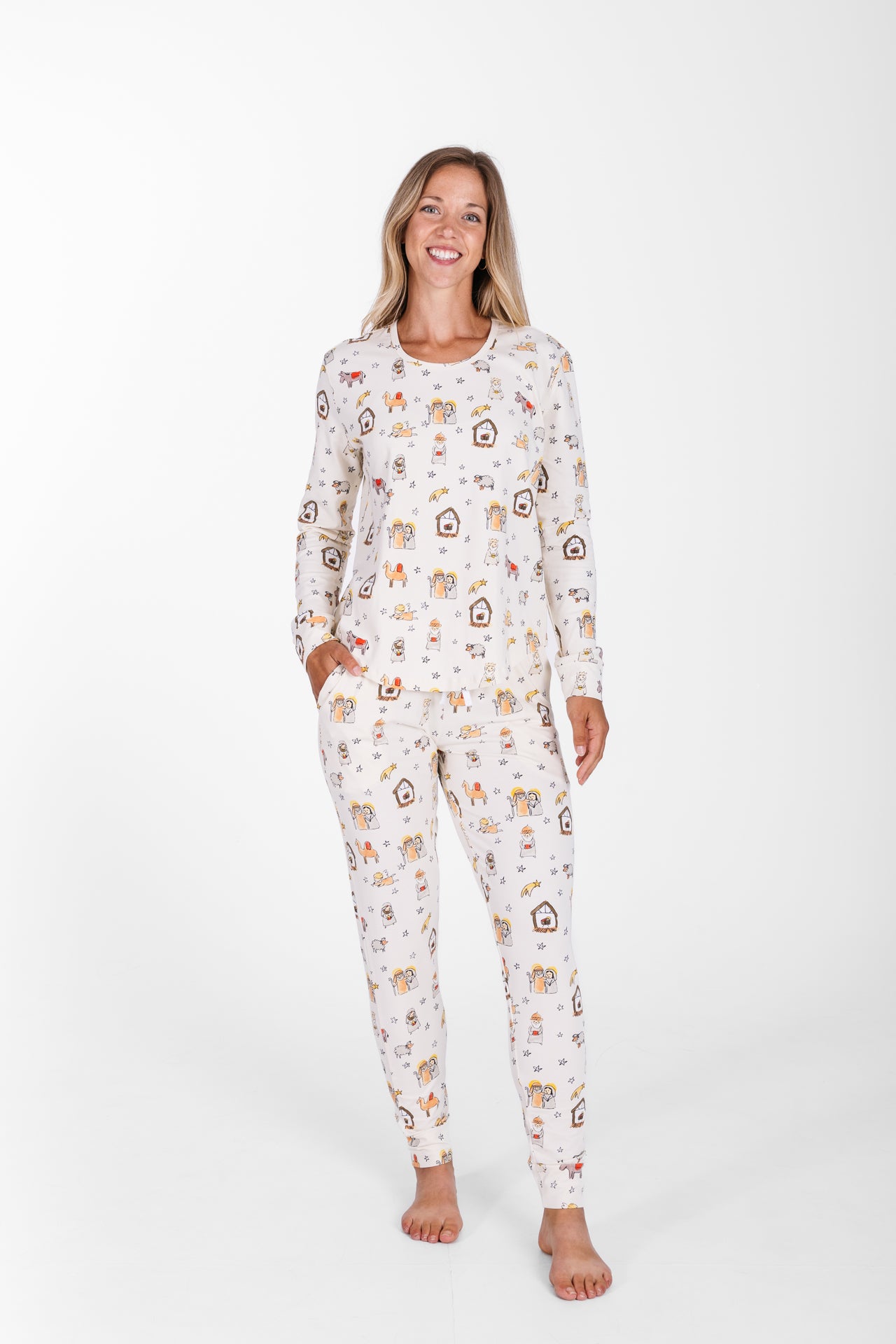 One of the most meaningful ways to celebrate Christmas is by wrapping your family in the story of Jesus’ birth. Our Women’s Away in a Manger Jogger Set was created to help you do just that—bringing Christ to the center of your traditions, while keeping you cozy and stylish through the season. Perfectly matched to the men’s, kids’, baby, and even pet pajamas, this set helps create unforgettable moments of joyful connection.