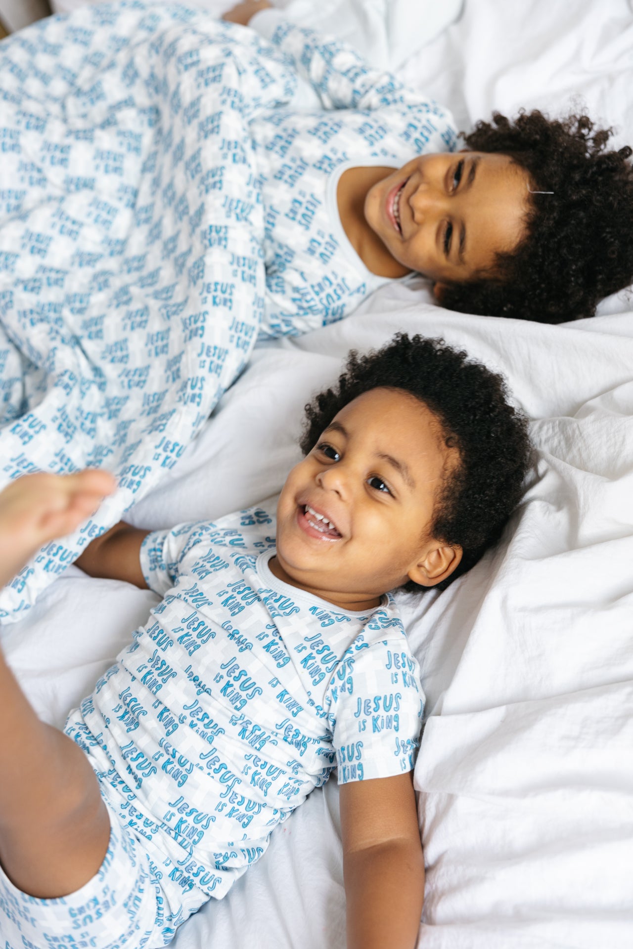 Jesus Is King Blue PJ Shorts Set Bamboo