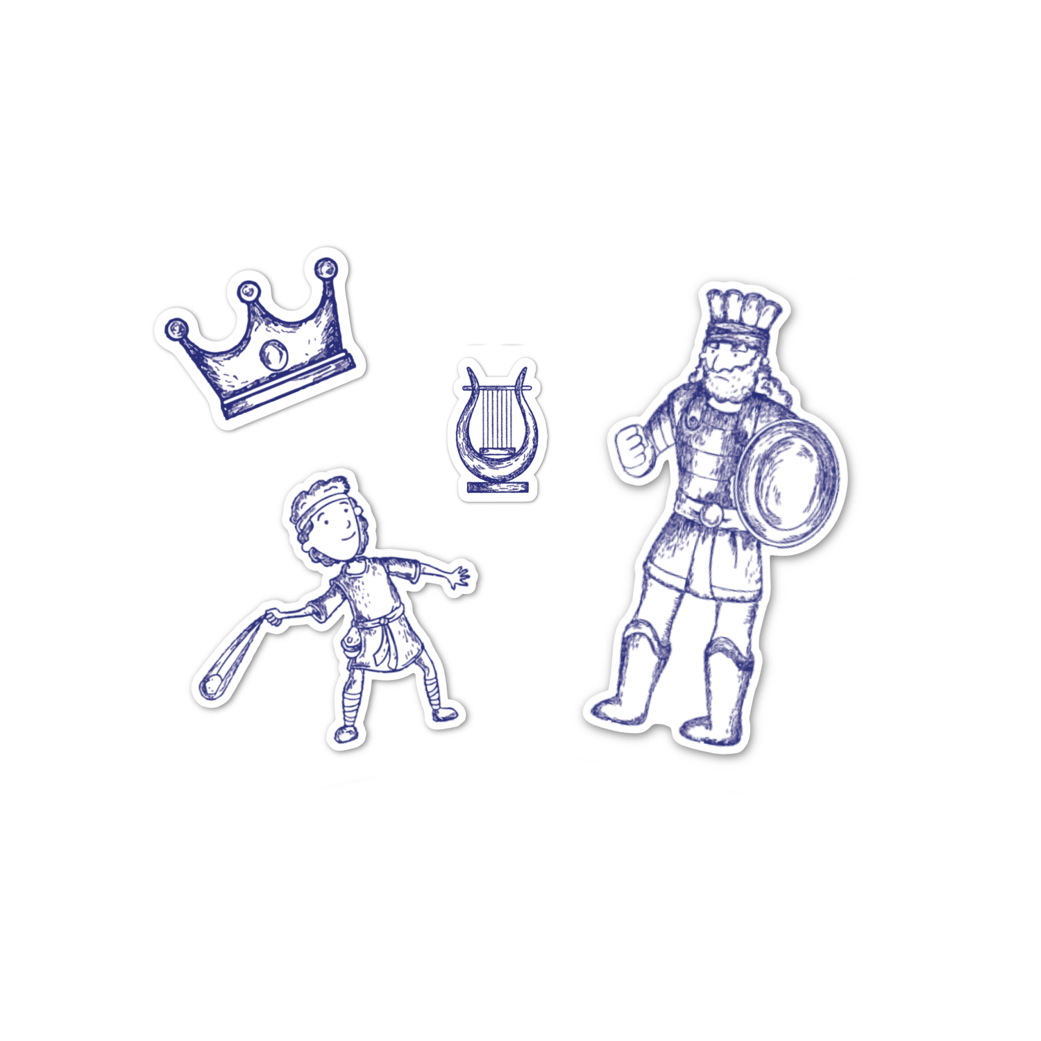 Add some fun to your gift giving with our David & Goliath Vinyl Die-Cut Stickers! This 4-pack features fun detailed images from our customer favorite David & Goliath print! Kids will have so much fun acting out the story with these stickers!