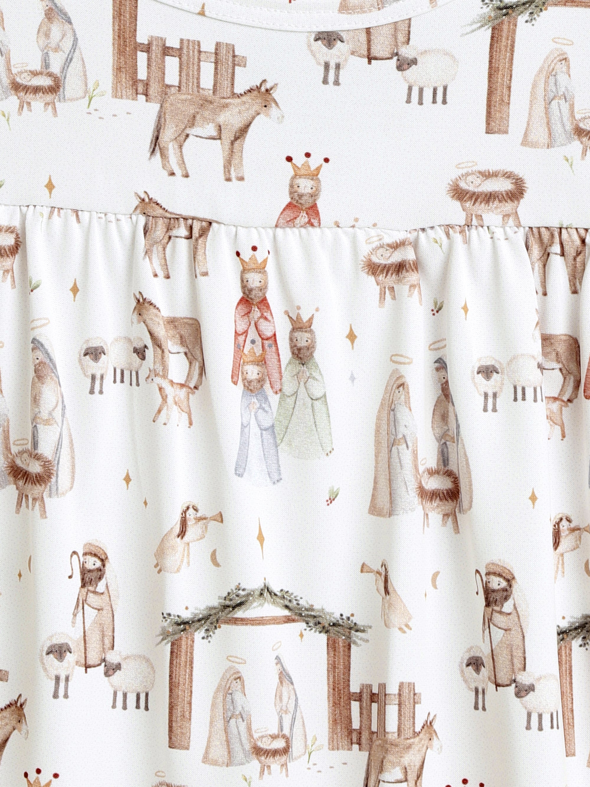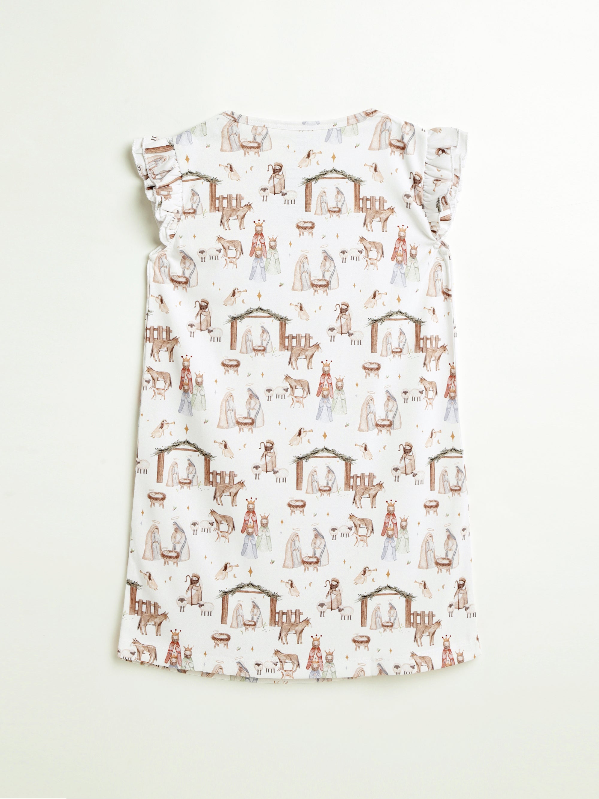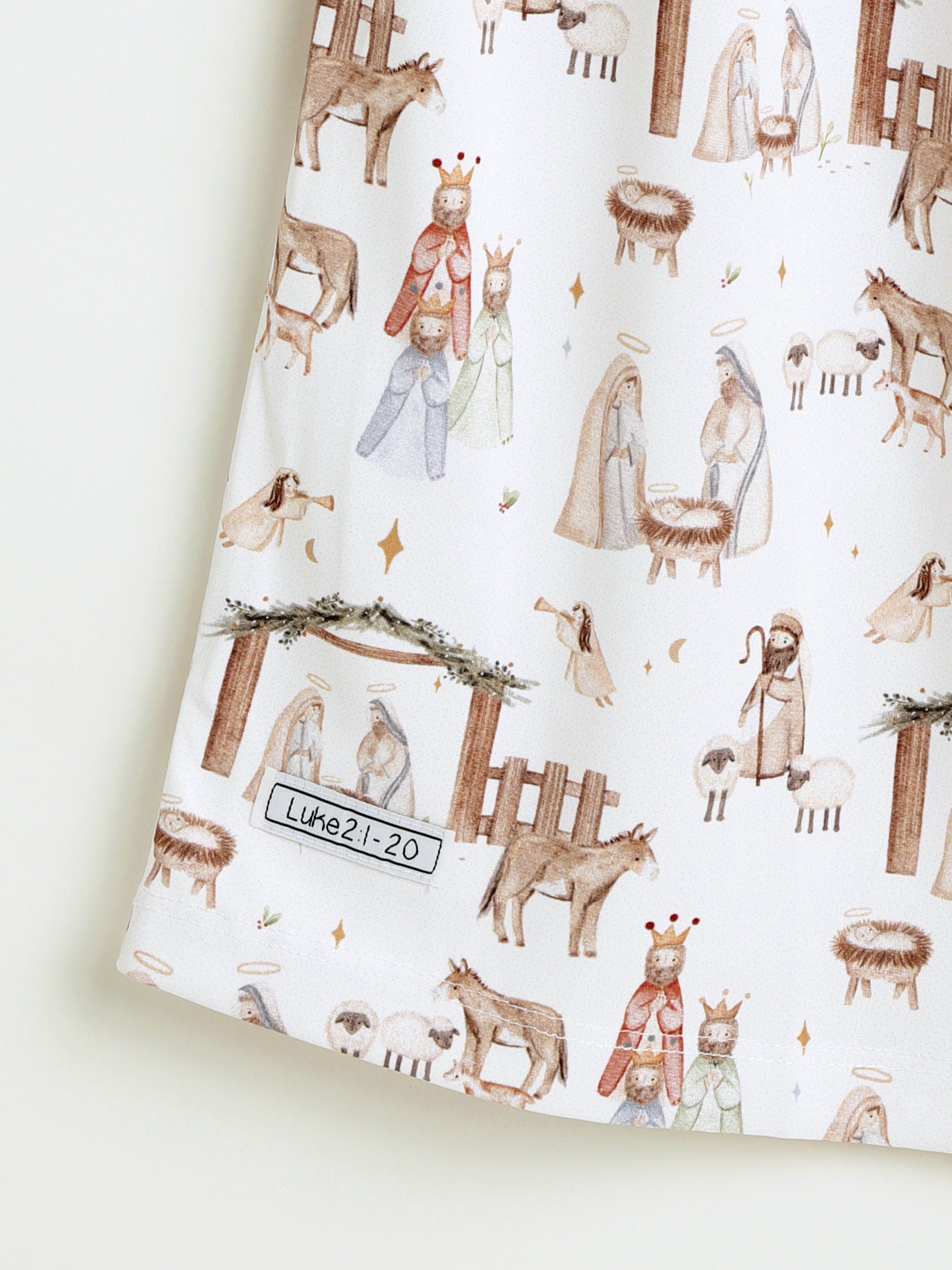 For the girl who loves a dreamy nightgown, this one wraps bedtime in the beauty of the Nativity. Our First Noel Girls’ Nightgown features hand-painted watercolor art on a warm white background—Mary and Joseph, Baby Jesus in the manger, shepherds, angels, wise men, and the guiding star—so the story of Christmas stays close as you make Christ-centered memories all season long. Lightweight, smooth, and easy to wear, it’s designed for cozy sleep and joyful mornings, with a right-arm Scripture label (Luke 2:1–20) that makes it simple for parents and grandparents to share the Nativity at bedtime.