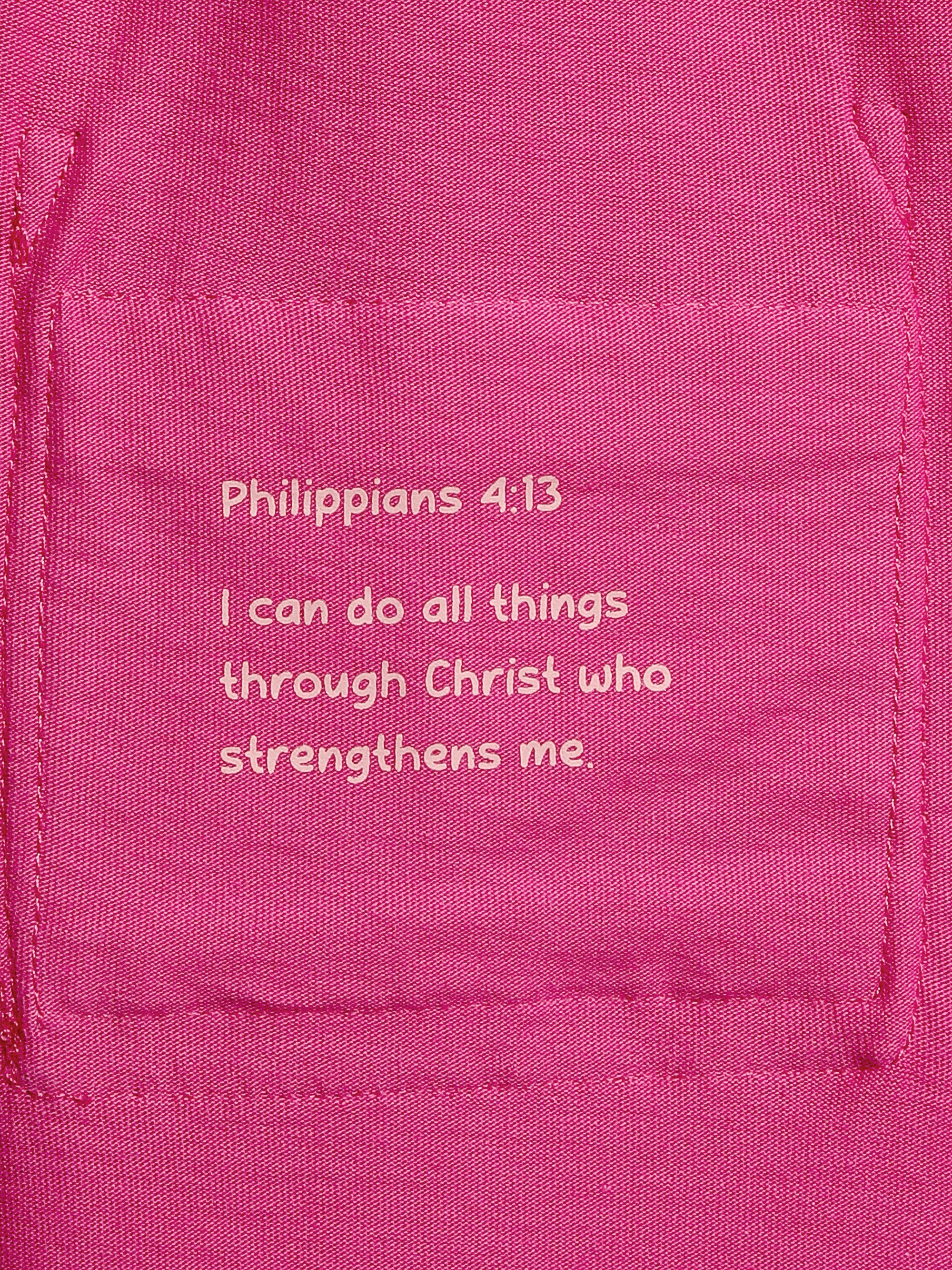And just beneath the surface, printed inside the garment, is Philippians 4:13: