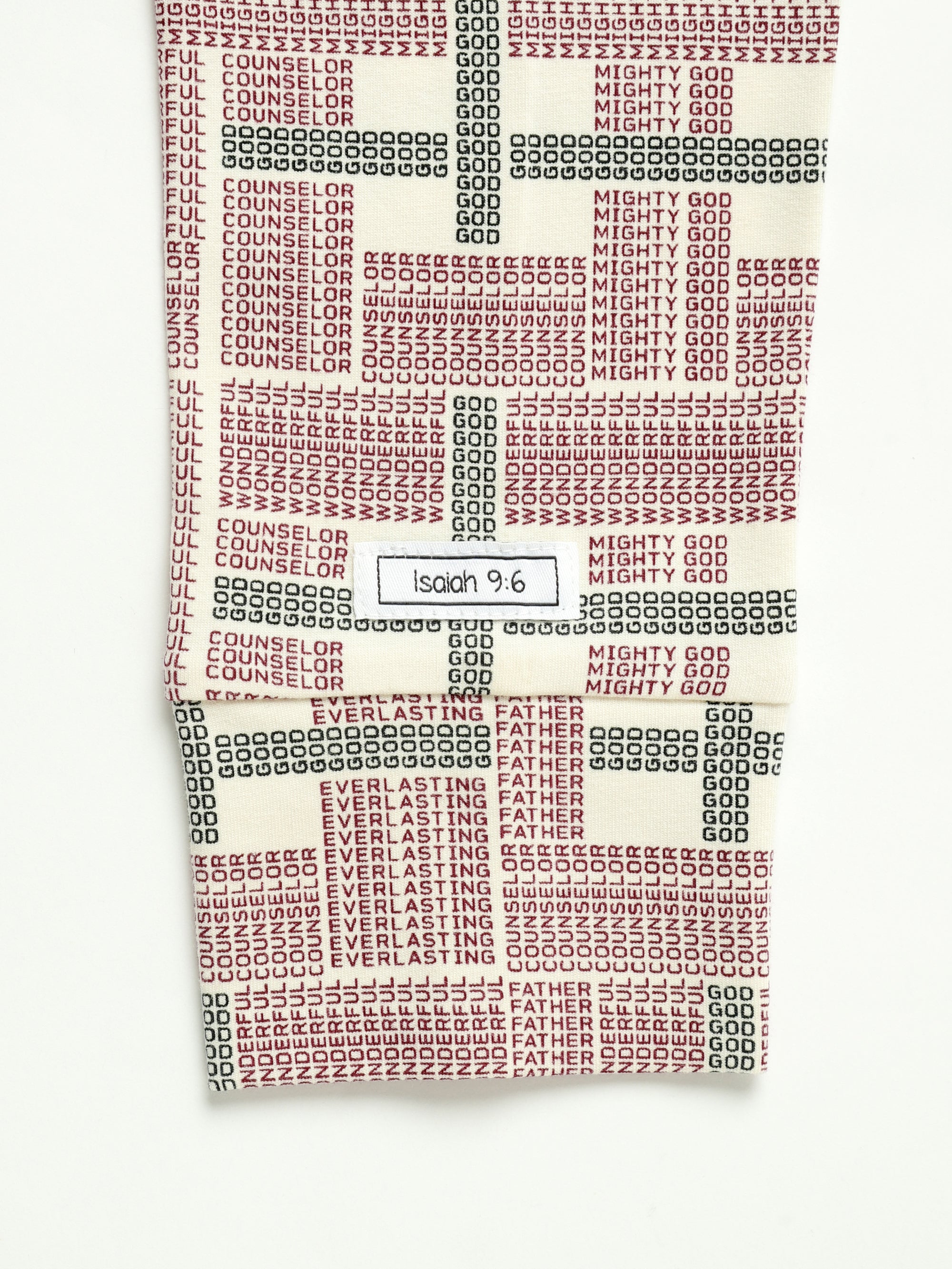 From across the room it looks like a classic holiday plaid; up close, every line is Scripture—Isaiah 9:6 woven word-by-word (Wonderful Counselor, Mighty God, Everlasting Father). Heritage meets hope in a pattern that invites questions, opens the door to teach, and keeps Christ at the center of your Christmas season.
